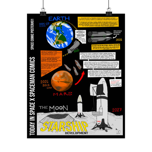 Starship Development Comic Poster — Matte Vertical SpaceX-Inspired Infographic